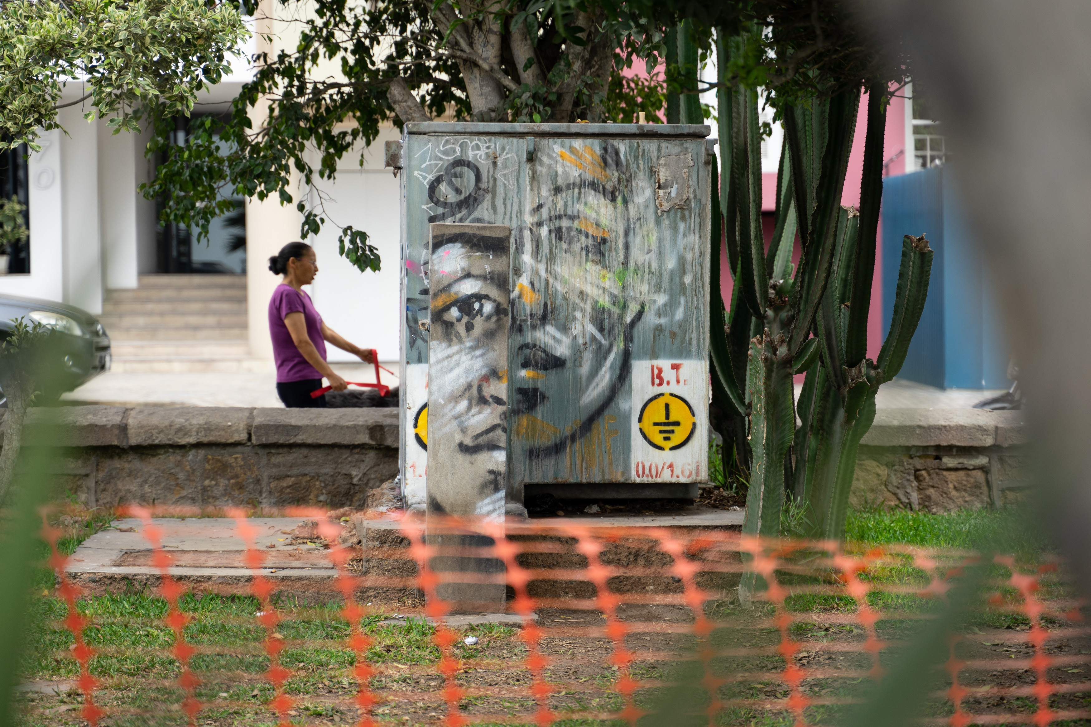 Viele Fahrradwege, Parks, großflächige Murals, viele hohe Zäune mit Elektrodraht. Der Himmel meist grau, manchmal blau.