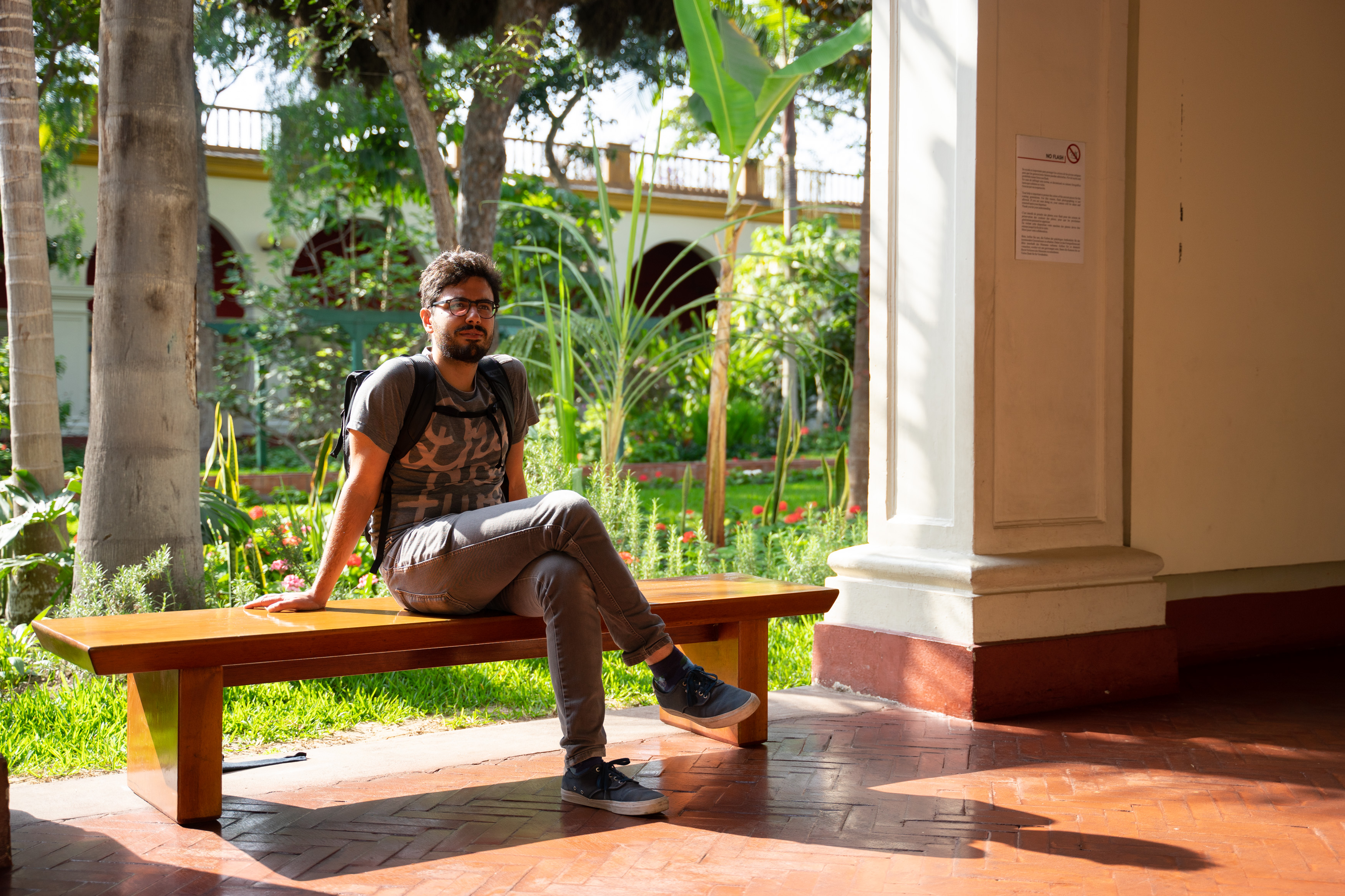 Wir fliegen von Berlin nach Frankfurt nach Madrid nach Lima. Klingt einfach und ist es erstaunlicherweise auch. Selbst unser Gepäck schafft es im ersten Anlauf und wir können nach Kofferausgabe und einer schnellen Taxifahrt durch die Stadt morgens kurz nach 7 Uhr in unsere Unterkunft für die kommenden Tage ziehen: ein kleines Apartment in Barranco, im Süden Limas. Durch die Zeitverschiebung sind wir schon sehr wach, daher zieht es uns bald nach draußen: Frühstück besorgen und Gegend erkunden.