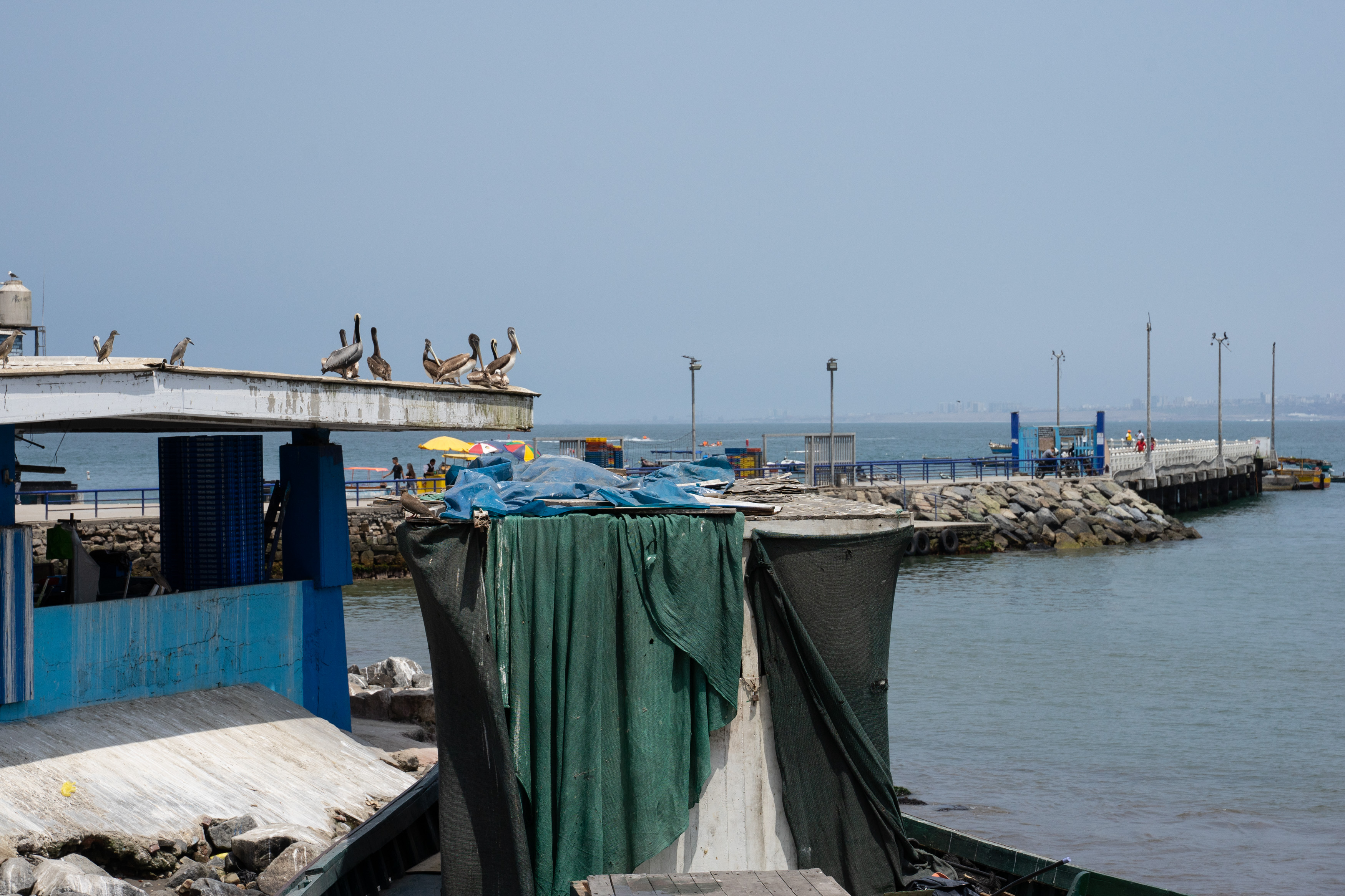 Beeindruckend sind auch die Pelikane unten am Hafen bei den Fischerbooten. Lässig ziehen sie ihre Runden, um sich dann auf ein Bötchen ihrer Wahl niederzulassen und ausgiebig das Gefieder zu putzen.