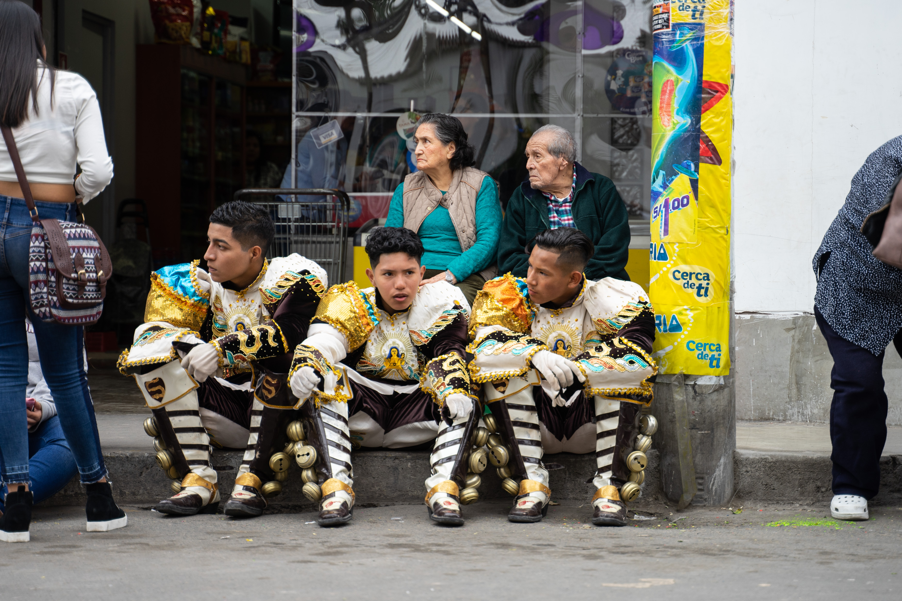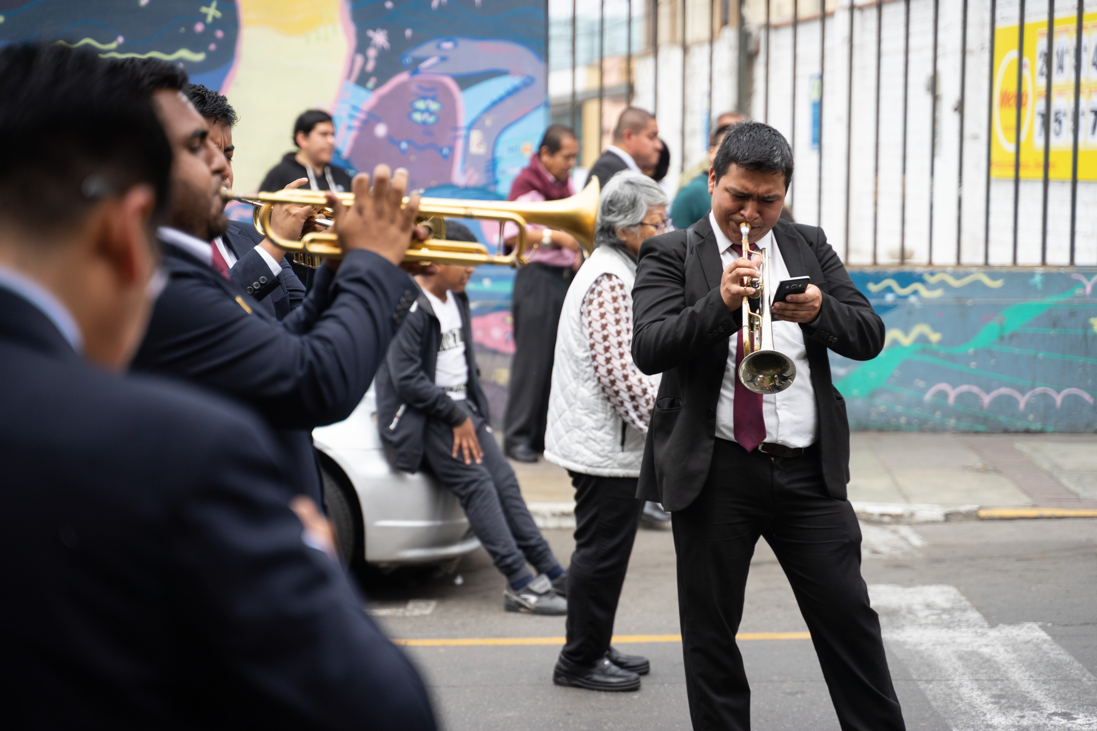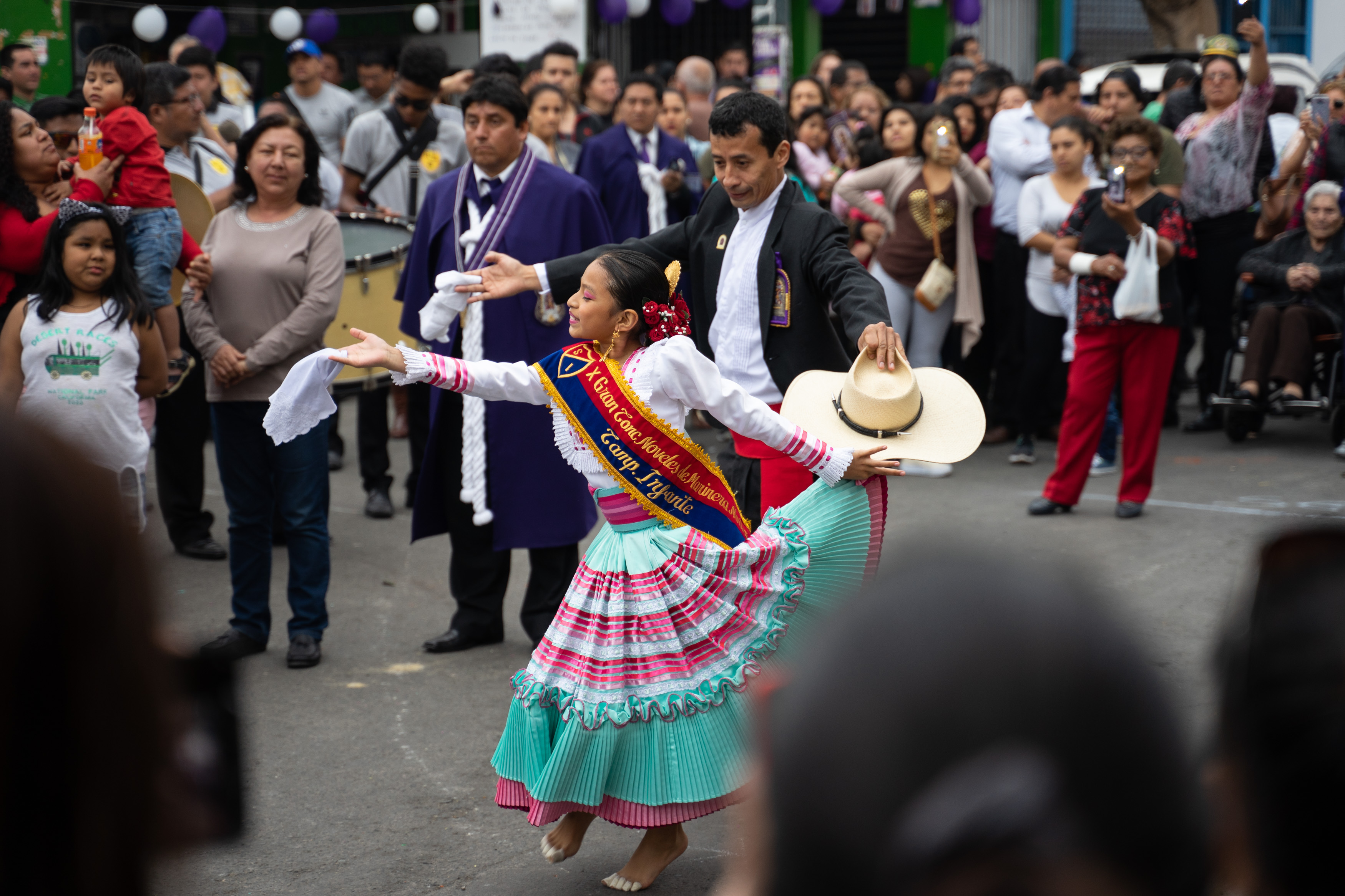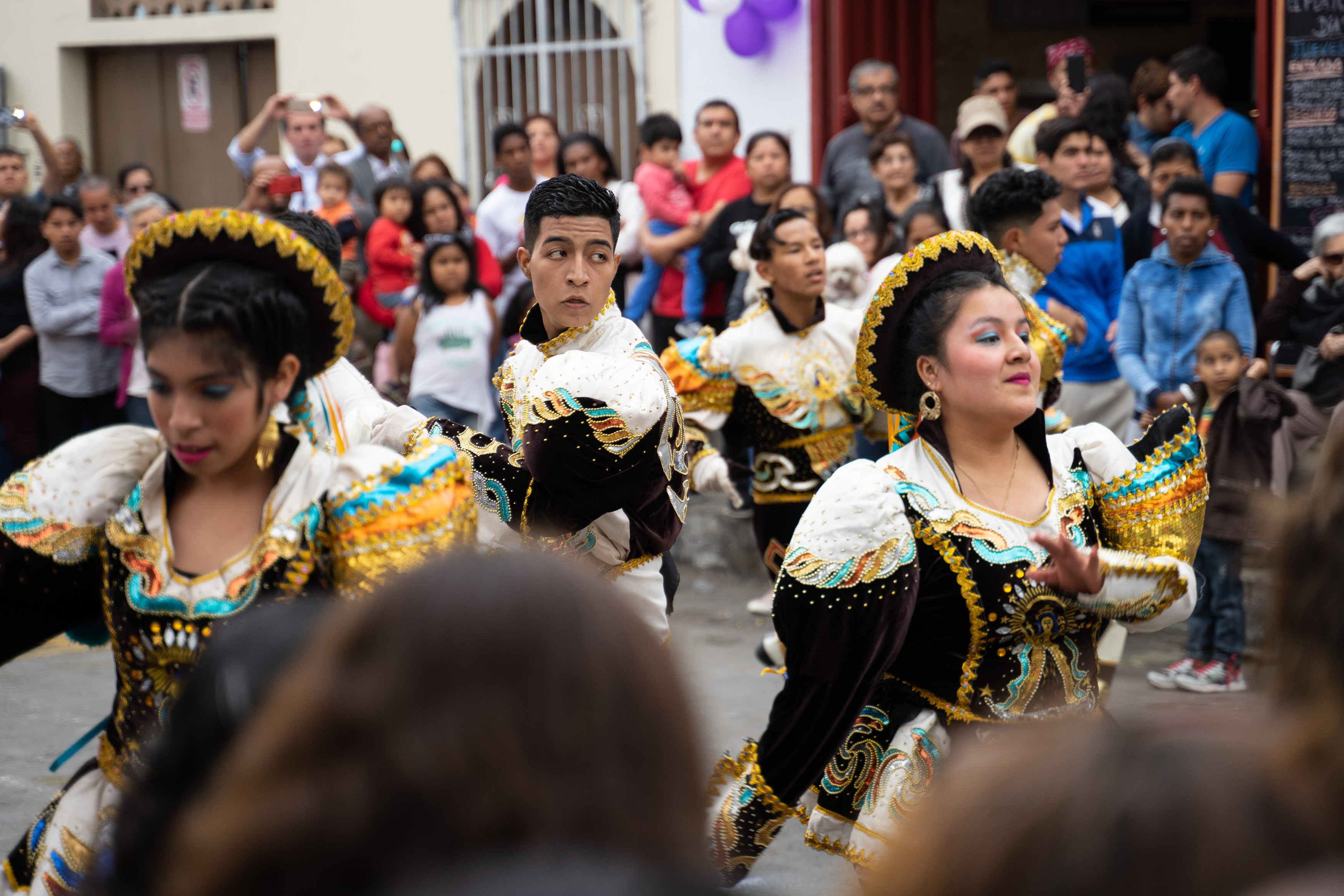Zufällig haben wir dem Fest Señor de los Milagros beigewohnt – wir sahen auf einem Poster, dass die Prozession durch unsere Straße verläuft. Es wird ein Bildnis Jesu aus dem 17. Jahrhundert an mehreren Tagen auf verschiedenen Routen durch Lima getragen, die am 1. November ist die letzte von vielen. Wir hatten gesehen, dass es um acht los geht, und machten uns Sorgen, dass wir verpassen, wie sie bei uns vorbeikommen. Also waren wir um 8.30 da. Letztendlich war die Kolonne gegen 15 Uhr bei uns.