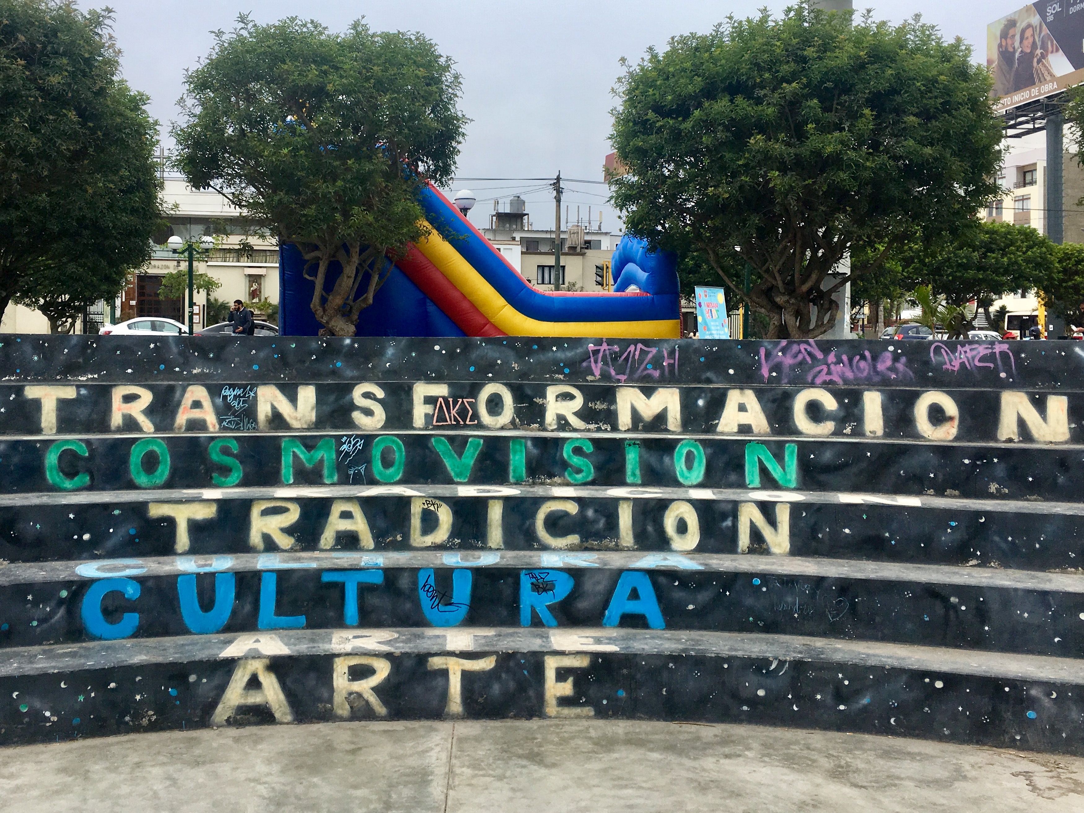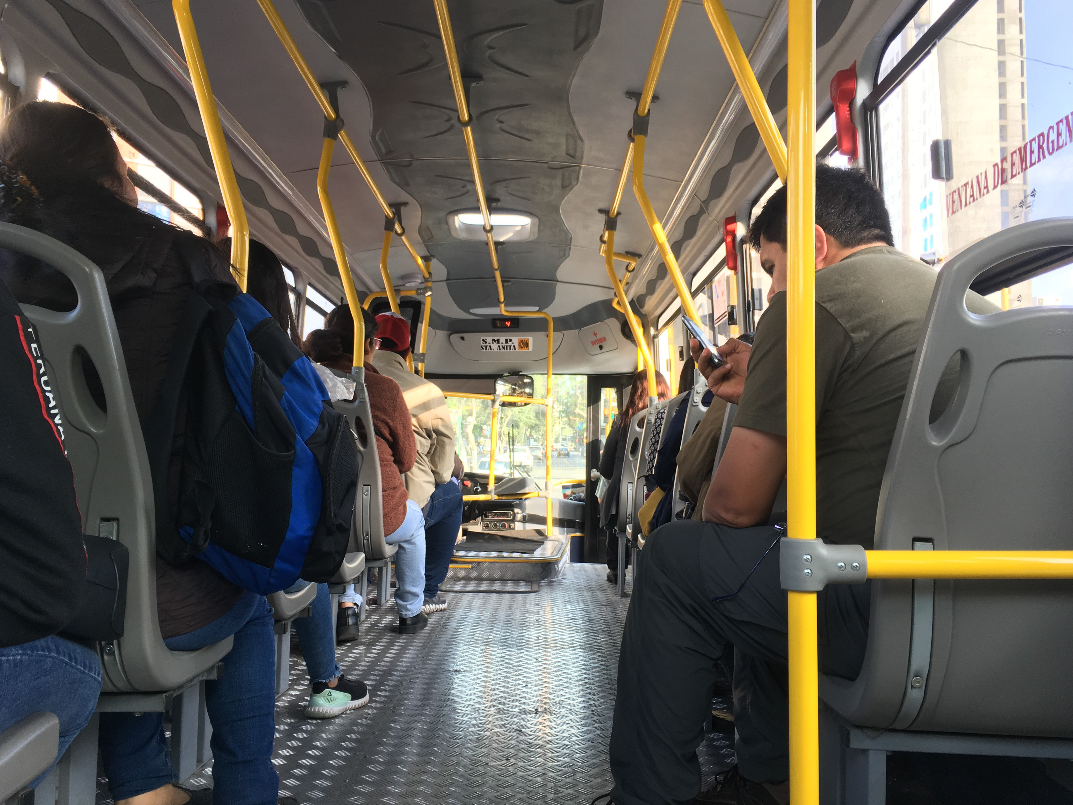 Nach ausführlicher Internetrecherche finden wir eine App, in der viele Routen vermerkt sind – Moovit. So gelingt es uns, herauszufinden, welche Busse wir nehmen können und ab diesem Zeitpunkt funktioniert das Busfahren fast problemlos. Man bezahlt beim Fahrer oder Kassierer zwischen 50 Centimos und 2 Soles pro Person, je nach Strecke. Das GPS-Signal hilft uns, den richtigen Moment zum Aussteigen zu finden. Für Unterhaltung während des Fahrt sorgt nicht nur der Verkehr und der Wettbewerb der Busse um die nächsten Fahrgäste – gekennzeichnet durch das ständigen Rufen des Kassierers „Vamos a Lince – Lince!“ sondern auch die Straßenverkäufer (Sandwiches, Eis, Kekse), Breakdance-Truppen im Stau zwischen den Autos oder Musiker, die für einige Meter mitfahren und ihre Produkte anbieten. Highlight bisher: der rappende Junge, der sich von den Passagieren erste Worte zu werfen lässt und damit improvisiert.